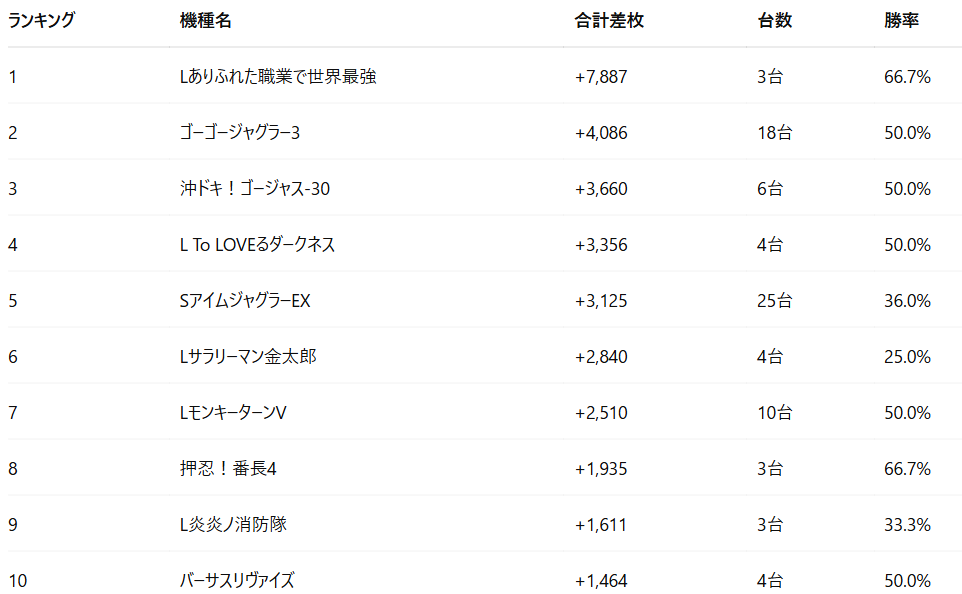 シリーズ全体でユーザーのプラス差枚を記録し、安定した支持を集めた様子が見られました。